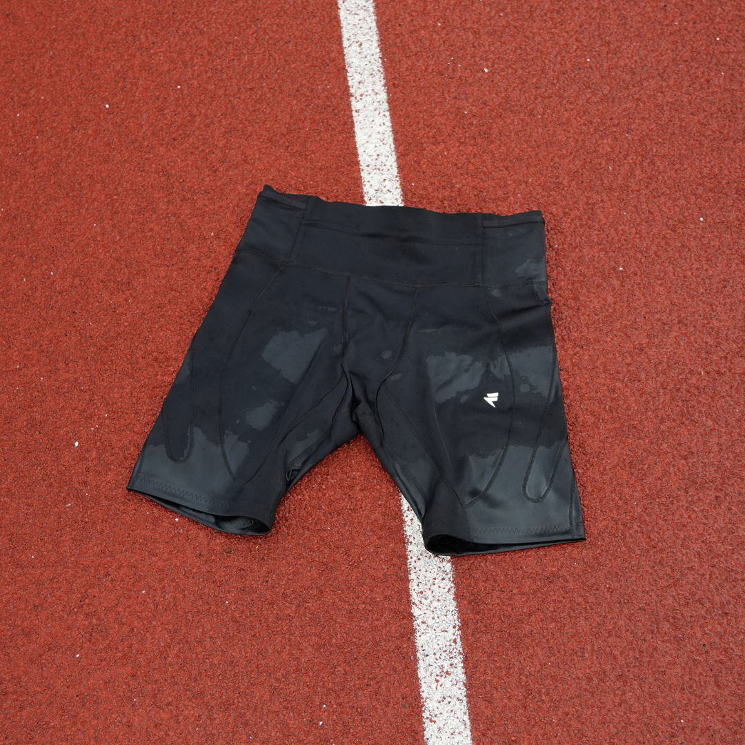 Praktische Kompressionsshorts mit integriertem Gürtel, die Ihre Laufstrecken komfortabler machen.